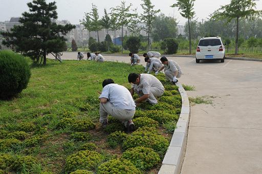 會(huì)后,一場黨員帶頭、員工共同參與的集體除草活動(dòng)熱火朝天地開展起來。大家有的用手拔、用的用鐮刀割、有的用袋裝、用的用車推,忙的不亦樂乎。快者幫助慢者,年輕者幫助年長者,大家一邊勞動(dòng),一邊互相問候,其樂融融。表面的雜草連根拔起,死角區(qū)域進(jìn)行了二次清除。烈日炎炎下,盡管很多人的臉上流下了晶瑩的汗滴,但他們依然在繼續(xù),沒有停歇。功夫不負(fù)有心人,經(jīng)過2個(gè)小時(shí)的辛勤勞動(dòng),責(zé)任區(qū)域內(nèi)的雜草、雜物被徹底清除。當(dāng)大家回望整潔有序的草坪時(shí),心中無比喜悅。